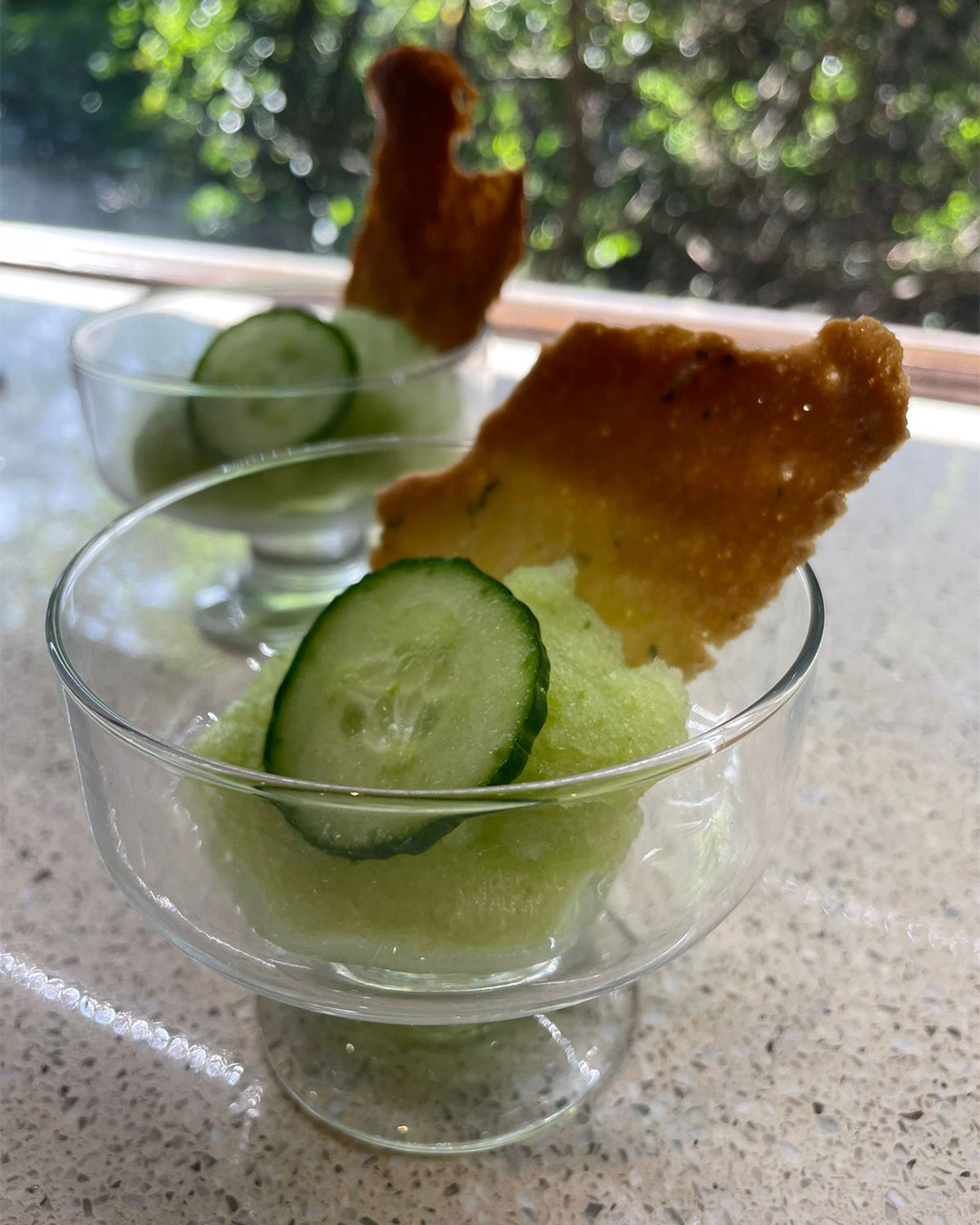 - Serve the sorbet with tuiles and a slide of cucumber or sprig of mint.